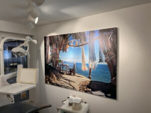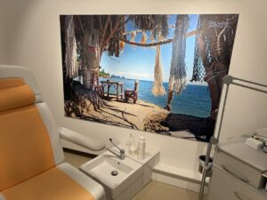 Es Überrascht mich immer wieder wie wichtig es ist auf Details zu achten wie zb. die Beleuchtung und ganz entscheidend die Größe des Bildes. Dabei habe ich jetzt meine Persönliche Erfahrung machen können, wenn man Umständlich Denkt. Zuerst hatte ich ein kleineres Format bestellt (100 x 150) doch beim Ausrichten der Lampen die du aus der Ferne mit Pauls Händy geführt hast ist dir gleich aufgefallen das dieses Bild zu klein ausgesucht wurde und an meiner Praxiswand ein viel größeres Format eine noch bessere Wirkung hat.